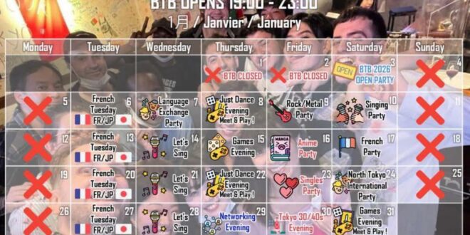 Reste connecté·e avec nous et ne manque rien de nos actualités, événements, photos, bons plans et coulisses ! Retrouve-nous sur nos différents réseaux sociaux https://www.instagram.com/bonjourtokyobar?utm_source=ig_web_button_share_sheet&igsh=ZDNlZDc0MzIxNw== https://www.facebook.com/BTBJu